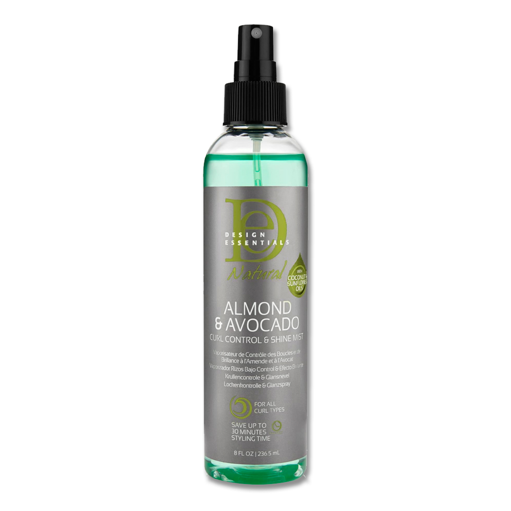 Design Essentials® Natural Almond & Avocado Curl Control & Shine Mist revitalizes and defines curls by infusing moisture, nourishing botanicals and oils to the hair shaft for luminous controlled curls and coils. Formulated with a replenishing blend of Sweet Almond, Avocado, and Coconut Oils, along with Chamomile Flower and active botanicals, it restores hair strength, curl elasticity and defies humidity for frizz-free curls. Lightweight formula tames and extends your natural style and is great for daily use. Ideal for wavy to curly hair types 2C-4A. Instantly refresh coils, curls, or any twist-set with Curl Control & Shine Mist- Perfect for providing moisture, shine, and hold.