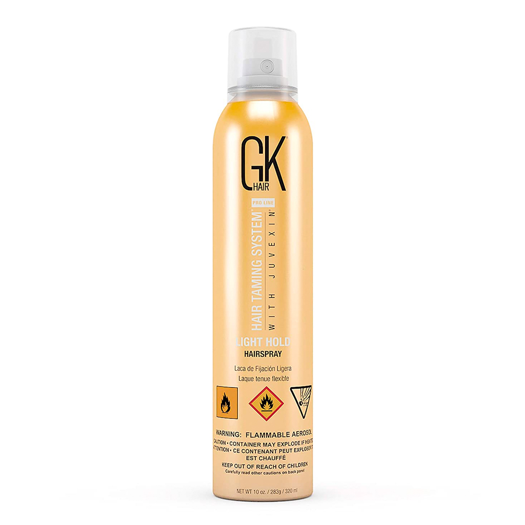 GKhair Light Hold Hairspray is perfect for softer styles, delivers light hold for subtle degrees of control and natural movement. The Light Hold Hairspray adds manageable hold and instant shine while taming frizz. lightweight finishing hair spray provides volume and shine. The hairstyling spray is fortified with Juvexin® keratin and PROVITAMIN B5 to add strength and body while moisturizing the hair